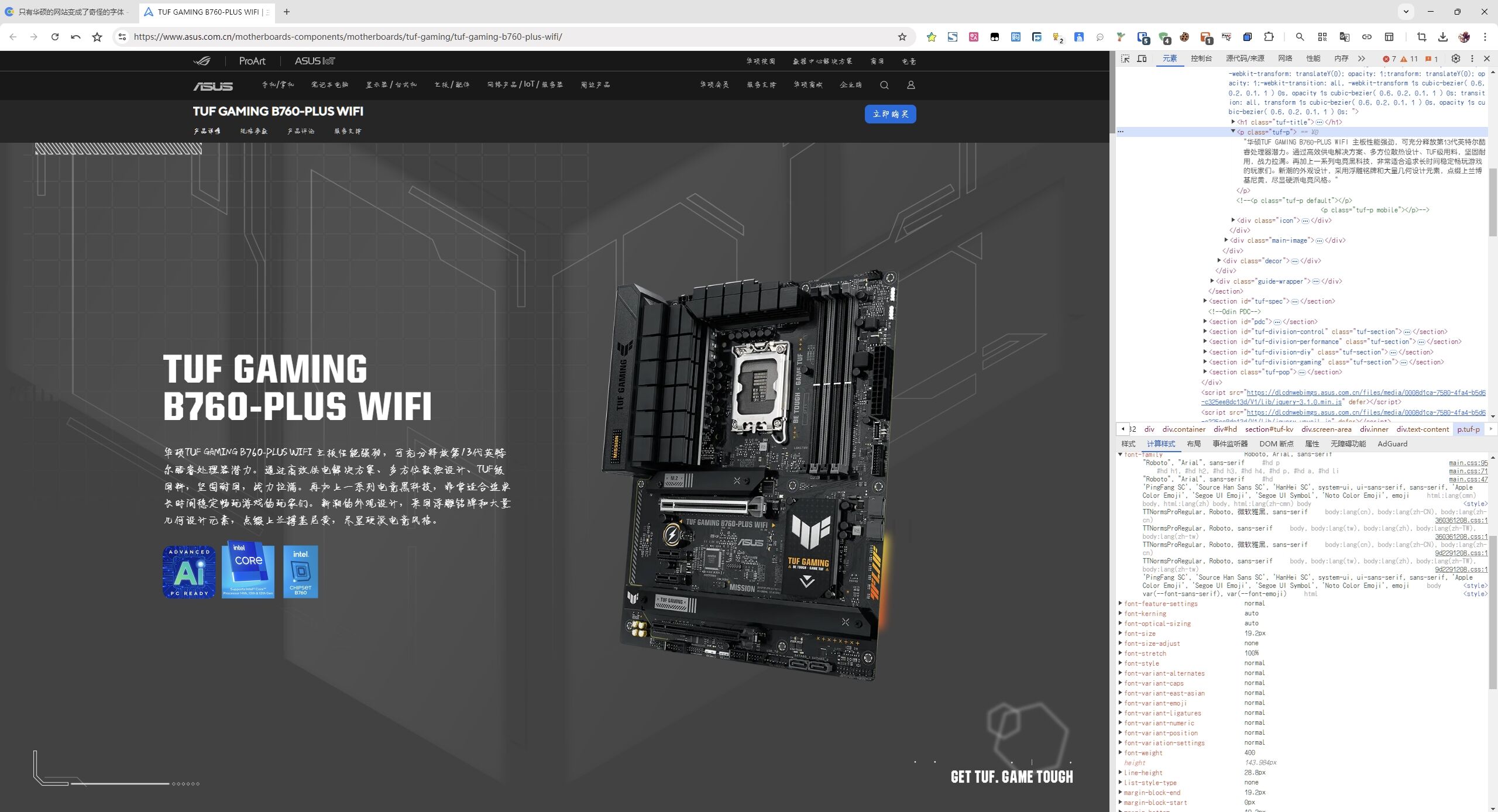 S8F8ry 发表于 2025-11-28 18:26 网页样式里文本是应用的浏览器 sans-serif 字体,你是不是有在 chrome://settings/fonts 自定义过 Sans-se ...